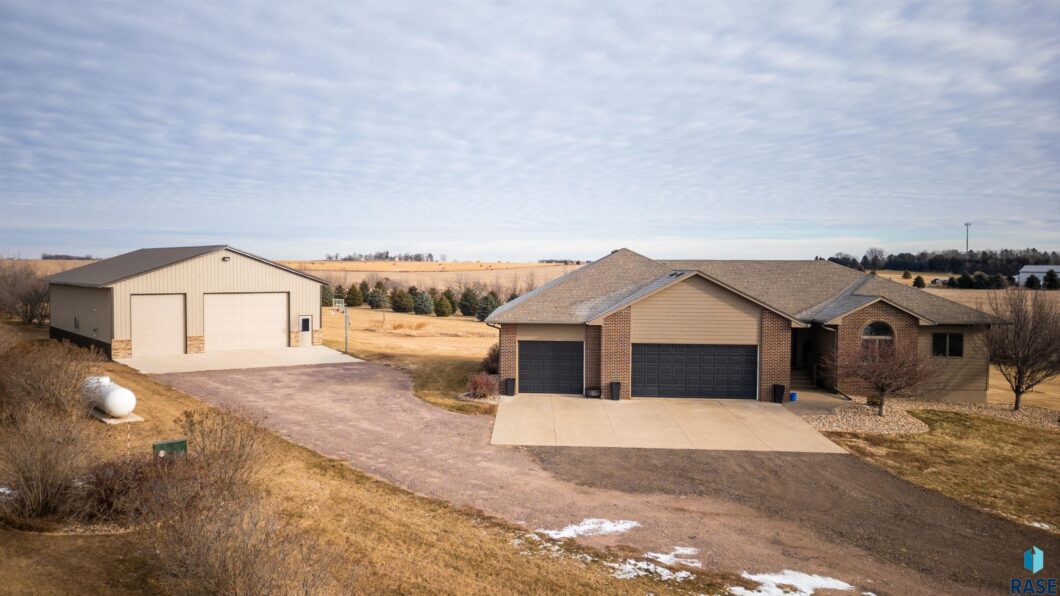 Welcome to your dream home! This stunning ranch acreage just outside of Garretson offers the perfect blend of luxury and tranquility. With its open-concept layout, this home boasts a spacious living area adorned with beautiful hardwood floors and a cozy gas fireplace. The gourmet kitchen is a chef’s delight, featuring granite countertops, ample cabinet space, and top-of-the-line stainless steel appliances. The master retreat offers a private oasis with a luxurious 4-piece ensuite bathroom and a walk-in closet. Two additional bedrooms share a full bath, perfect for family or guests. Convenience is key with main floor laundry/mudroom and an additional half bath for guests. Downstairs, you’ll find a spacious family room with another gas fireplace, a wet bar area for entertaining, and a walk-out patio for relaxation. Plus, this property includes three garage stalls, 42X56 heated concrete shop with 3 12ft garage doors & 14 ft sidewalls, & is surrounded by picturesque trees for ultimate privacy. Don’t miss your chance to call this incredible ranch acreage home – schedule your showing today before it’s gone!