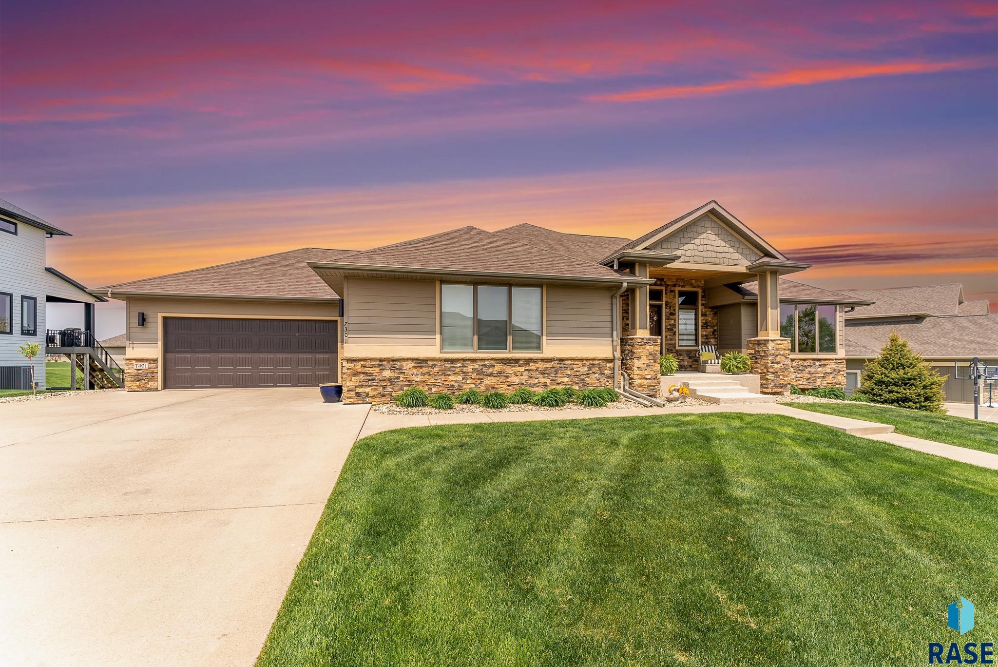 Check out this 3 bed, 2 bath, ranch, with bonus living areas in Tea! Enter the spacious living room with vaulted ceilings and statement fireplace